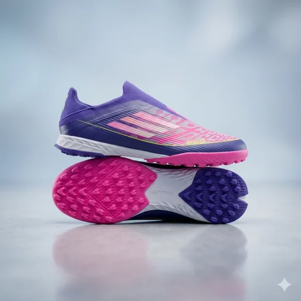 اللون البنفسجي مع الوردي يعطيك حضور قوي ومميز، بينما النعل المصمم خصيصًا للعشب الصناعي يضمن لك حركة سلسة بدون انزلاق.